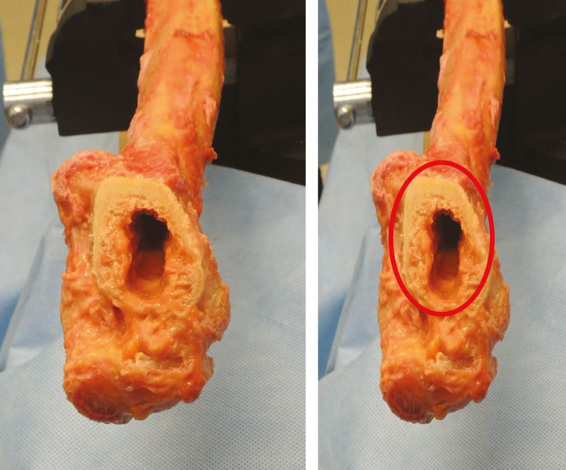 - Intra-operative findings: structure of cortical ring (Figure 1), bone quality during reaming process.