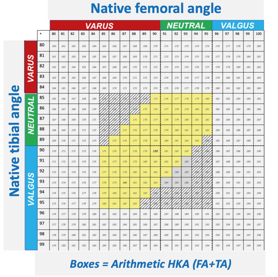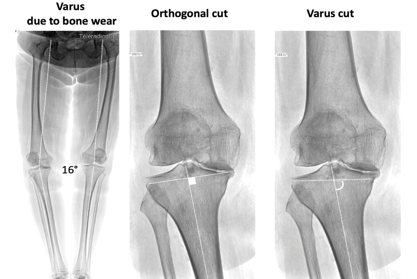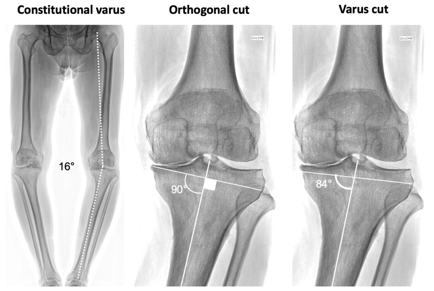 One of the main paradigm shifts of knee arthroplasty in the last decades has been the switch from systematic alignment (mechanical or anatomic) to individualized alignment (kinematic, restricted, inverse kinematic, or functional alignment…) [2], Beckers G, Meneghini RM, Hirschmann MT, Kostretzis L, Kiss MO, Vendittoli PA (2024) Ten Flaws of Systematic Mechanical Alignment Total Knee Arthroplasty. J Arthroplasty 39 (3):591-599. [24], Rivière C, Vigdorchik JM, Vendittoli PA (2019) Mechanical alignment: The end of an era! Orthop Traumatol Surg Res 105 (7):1223-1226. [27] Saffarini M, Hirschmann MT, Bonnin M (2023) Personalisation and customisation in total knee arthroplasty: the paradox of custom knee implants. Knee Surg Sports Traumatol Arthrosc 31 (4):1193-1195. . Many surgeons have abandoned the concept of ‘90° cuts for all’ and now try to restore, at least partially, the native phenotype (femoral and tibial angles as well as joint line orientation) [2], Beckers G, Meneghini RM, Hirschmann MT, Kostretzis L, Kiss MO, Vendittoli PA (2024) Ten Flaws of Systematic Mechanical Alignment Total Knee Arthroplasty. J Arthroplasty 39 (3):591-599. [3], Blakeney W, Beaulieu Y, Puliero B, Kiss MO, Vendittoli PA (2020) Bone resection for mechanically aligned total knee arthroplasty creates frequent gap modifications and imbalances. Knee Surg Sports Traumatol Arthrosc 28 (5):1532-1541. [4], Blakeney W, Clément J, Desmeules F, Hagemeister N, Rivière C, Vendittoli PA (2019) Kinematic alignment in total knee arthroplasty better reproduces normal gait than mechanical alignment. Knee Surg Sports Traumatol Arthrosc 27 (5):1410-1417. [15], Karasavvidis T, Pagan Moldenhauer CA, Haddad FS, Hirschmann MT, Pagnano MW, Vigdorchik JM (2023) Current Concepts in Alignment in Total Knee Arthroplasty. J Arthroplasty 38 (7 Suppl 2):S29-s37. [16], Karasavvidis T, Pagan Moldenhauer CA, Lustig S, Vigdorchik JM, Hirschmann MT (2023) Definitions and consequences of current alignment techniques and phenotypes in total knee arthroplasty (TKA) - there is no winner yet. J Exp Orthop 10 (1):120. [18], Lustig S, Sappey-Marinier E, Fary C, Servien E, Parratte S, Batailler C (2021) Personalized alignment in total knee arthroplasty: current concepts. [22], Rivière C, Iranpour F, Auvinet E, Howell S, Vendittoli PA, Cobb J, Parratte S (2017) Alignment options for total knee arthroplasty: A systematic review. Orthop Traumatol Surg Res 103 (7):1047-1056. [24] Rivière C, Vigdorchik JM, Vendittoli PA (2019) Mechanical alignment: The end of an era! Orthop Traumatol Surg Res 105 (7):1223-1226. . However, most surgeons plan their procedures on plain radiographs showing only the global deformity of the limb, which is a combination of native alignment, arthritic remodelling (bone wear and laxity), and radiologic errors due to fixed flexion deformity and/or malrotation[5] Bonnin MP, Beckers L, Leon A, Chauveau J, Müller JH, Tibesku CO, Aït-Si-Selmi T (2022) Custom total knee arthroplasty facilitates restoration of constitutional coronal alignment. Knee Surg Sports Traumatol Arthrosc 30 (2):464-475. . It is therefore unrealistic to deduce the true native alignment of a given patient from their preoperative radiograph. This is a main limitation because: (i) in daily life we only have an approximate knowledge of a patient’s phenotype and (ii) the literature never differentiates native and arthritic deformities and fails to define the appropriate targets (Figure 3).