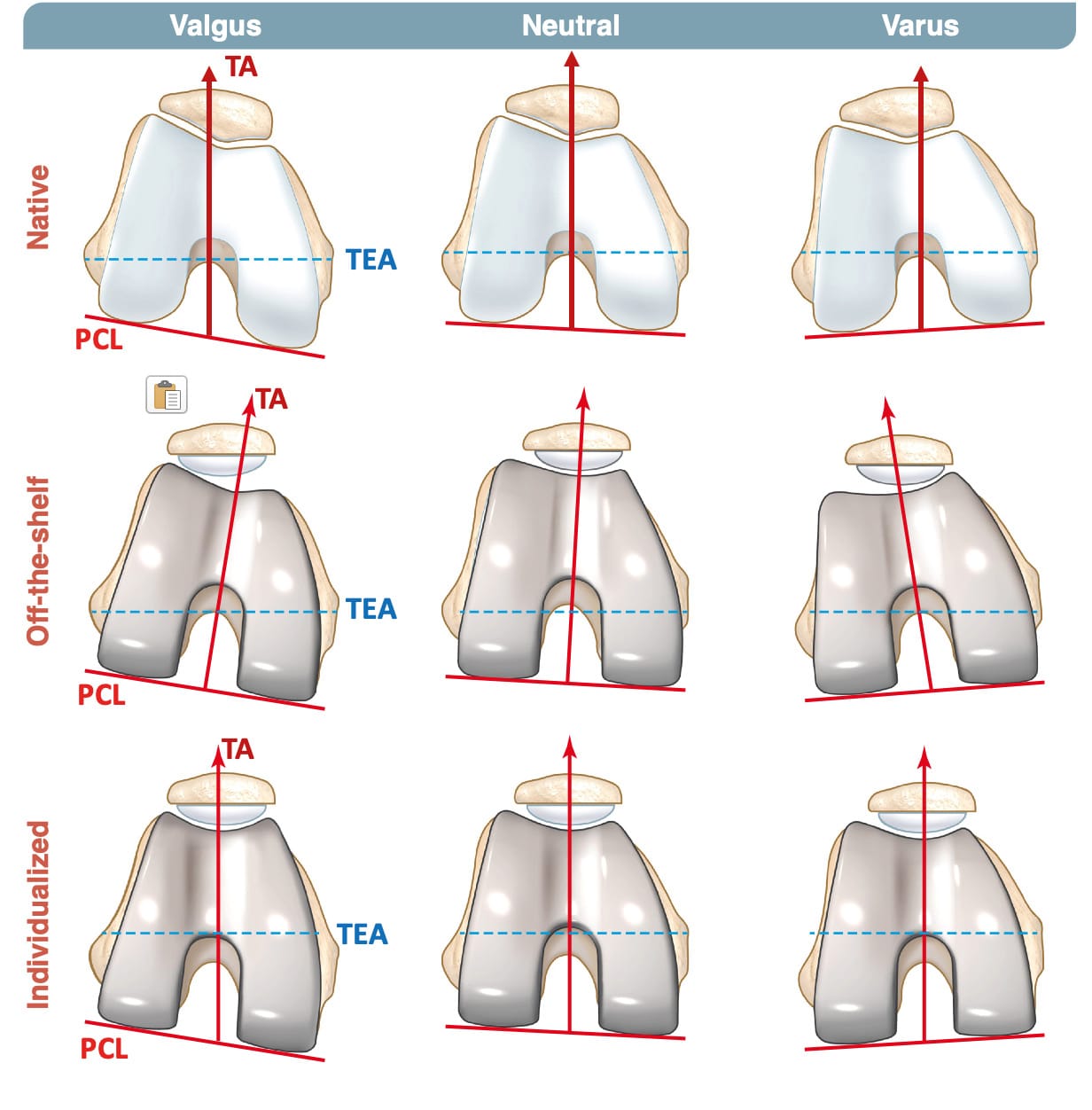 Conclusion: Individualized TKA components, designed through 3D modeling, allow for the restoration of pre-arthritic phenotypes while optimizing patellofemoral tracking. This comprehensive approach addresses the geometric limitations of conventional implants and supports the transition toward functional alignment strategies.