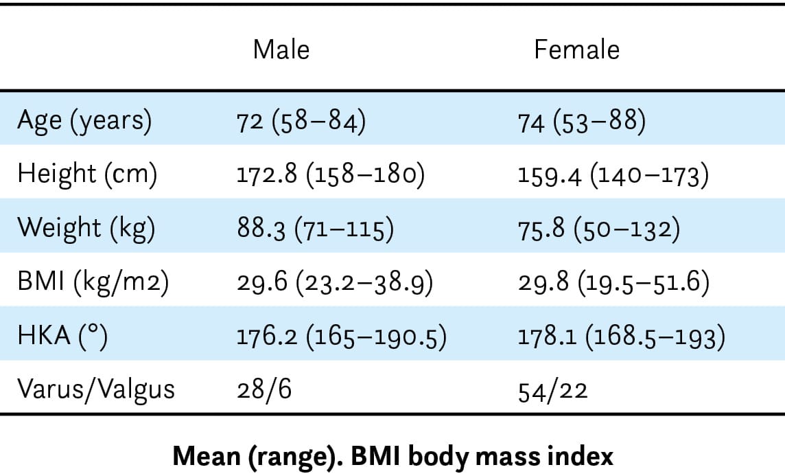 Exclusion criteria of the study were: varus or valgus deformities greater than 15°.