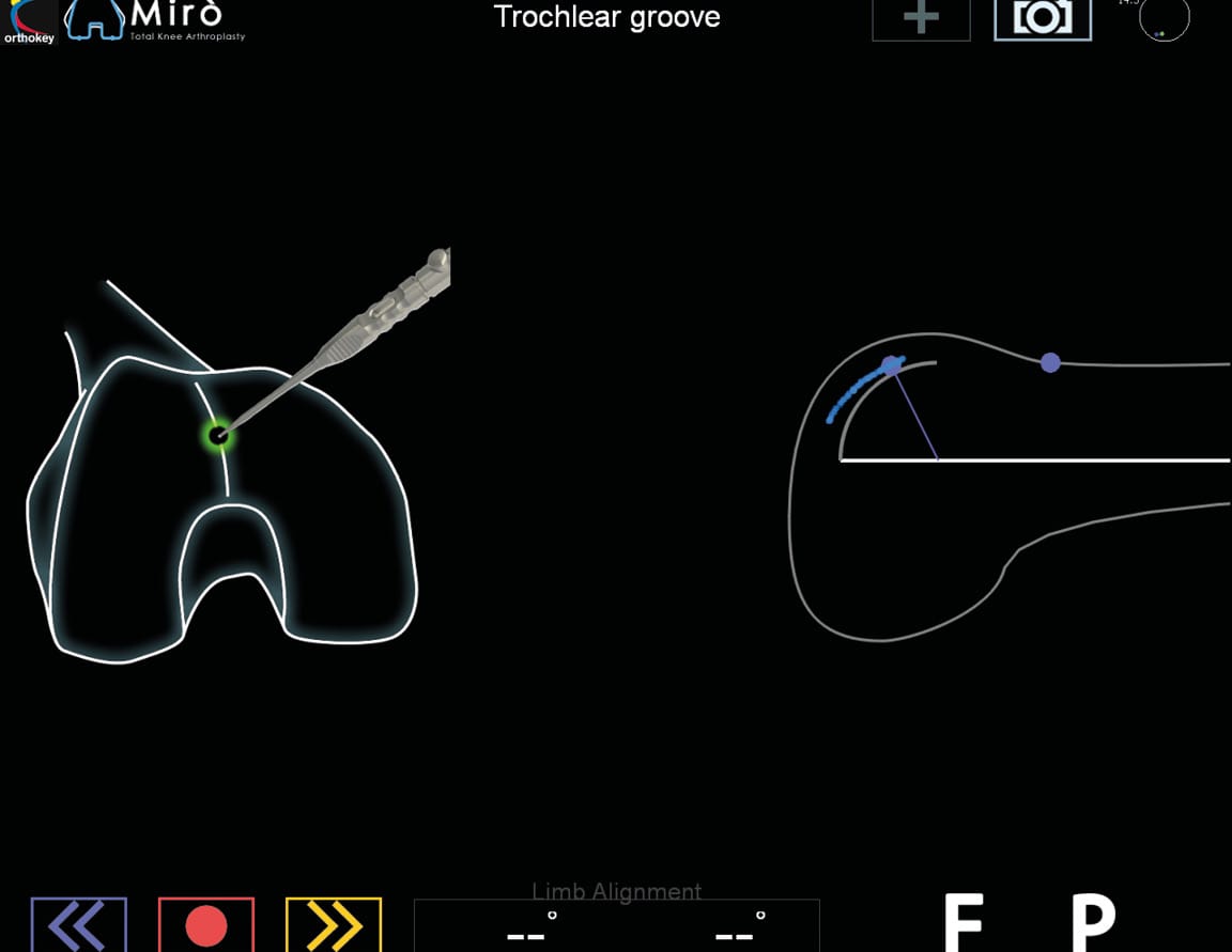 Modeling of native trochlear groove for intraoperative implant positioning has been demonstrated to be safe and useful. The geometry of the trochlear groove in patients with osteoarthritis could be described accurately as a circle in the sagittal plane with an average radius of 25.5 ± 5.6 mm and a 3.2° ± 4.3° of external rotation, with respect to the posterior condyle axis and a 3.9° ± 5.3° of external rotation, with respect to the mechanical axis.