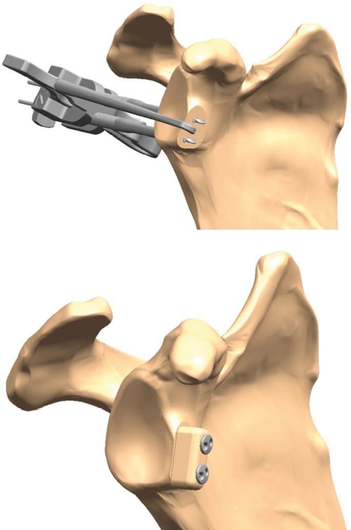In the traditional Latarjet technique (open or arthroscopic), fixation of the transferred bone block is achieved with two (4.5-mm-diameter) bicortical screws. However, literature and our experience reveal at least 3 drawbacks to this technique of fixation.