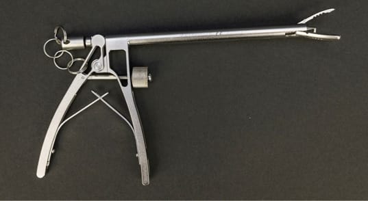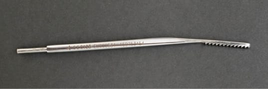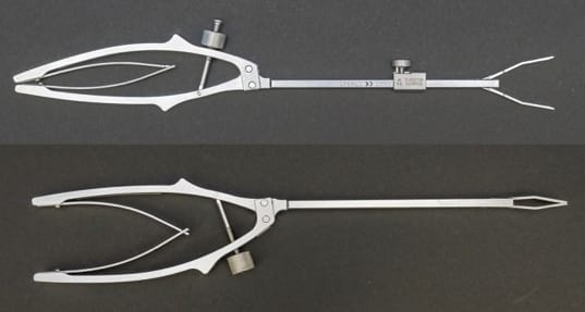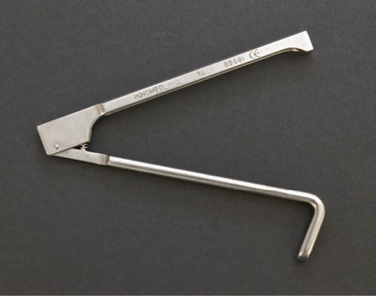 Tip: Twist the posterior spreader 45° to increase the space laterally (i.e., to open the window) and avoid catching the conjoint tendon during the transfer.