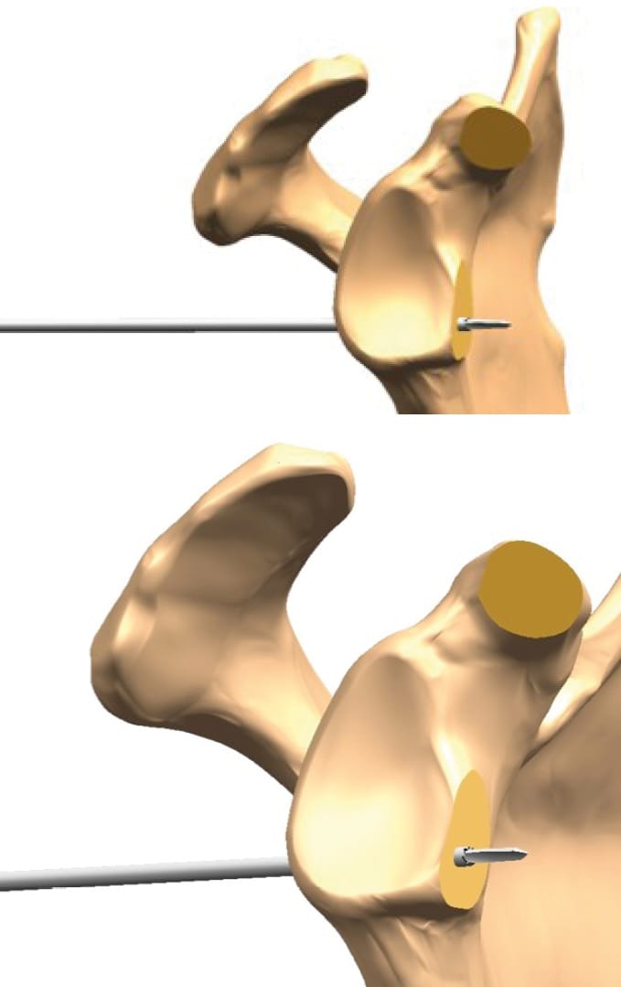 Place the bullet and make a second posterior skin incision. Push the bullet until it reaches the posterior neck of the glenoid.