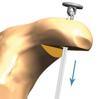 Remove the Tensioner and lock the construct using 3 square knots (surgeon’s knots) with the help of a knot-pusher.
