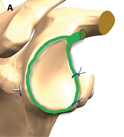 The main benefits of keeping the capsule and labrum are the following: (1) it protects the humeral head from contact with the graft (which should theoretically result in a reduced incidence of arthritis); (2) it adds shoulder stability (by keeping the bumper effect); (3) it preserves proprioception (essential in sportsmen); and (4) there is no hardware inside the glenohumeral joint, which reduces the risk of reoperation for symptomatic hardware.