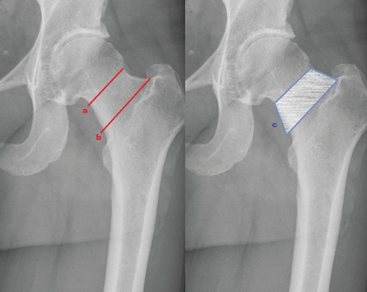 Neck resecting short stems largely correspond to the philosophy of past conventional straight stems and require similar quality of bone (Figure 2b). In order to reconstruct hip geometry in terms of offset and leg length, a high amount of modularity and different sizes is needed and often accuracy is poor [10] Höhle P, Schröder SM, Pfeil J (2015) Comparison between preoperative digital planning and postoperative outcomes in 197 hip endoprosthesis cases using short stem prostheses. Clin Biomech 30:46–52. doi: 10.1016/j.clinbiomech.2014.11.005..