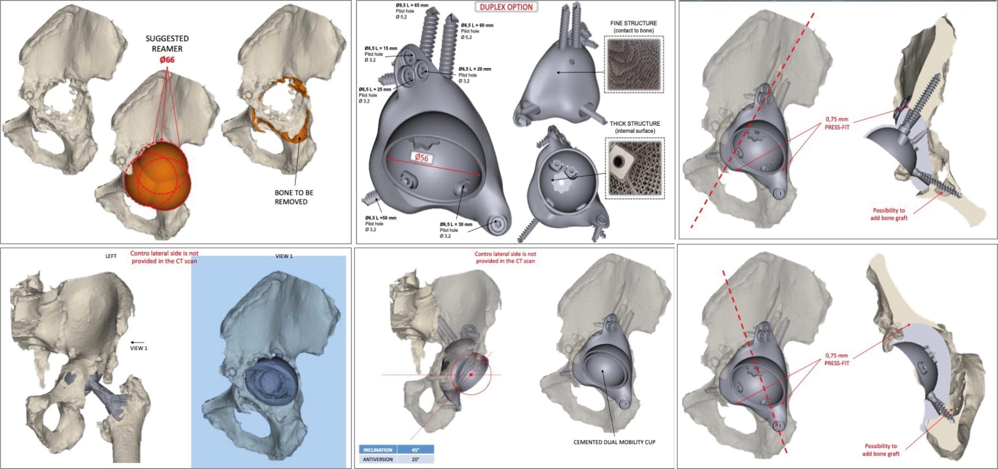 - The surgical strategy of biological reconstruction (use of a reinforcement device [15], Sayac G, Neri T, Schneider L, Philippot R, Farizon F, Boyer B. Low Revision Rates at More Than 10 Years for Dual-Mobility Cups Cemented Into Cages in Complex Revision Total Hip Arthroplasty. J Arthroplasty 2020;35:513–9. https://doi.org/10.1016/j.arth.2019.08.058.[27], Assi C, Caton J, Fawaz W, Samaha C, Yammine K. Revision total hip arthroplasty with a Kerboull plate: comparative outcomes using standard versus dual mobility cups. Int Orthop 2019;43:2245–51. https://doi.org/10.1007/s00264-018-4209-z.[30], Lebeau N, Bayle M, Belahouane R, Chelli M, Havet E, Brunschweiler B, et al. Total hip arthroplasty revision by dual-mobility acetabular cup cemented in a metal reinforcement: a 62 case series at a minimum 5 years? follow-up. Orthop Traumatol Surg Res 2017. https://doi.org/10.1016/j.otsr.2017.04.009.[43], Haen TX, Lonjon G, Vandenbussche E. Can cemented dual-mobility cups be used without a reinforcement device in cases of mild acetabular bone stock alteration in total hip arthroplasty? Orthop Traumatol Surg Res 2015;101:923–7. https://doi.org/10.1016/j.otsr.2015.09.027.[45] Wegrzyn J, Pibarot V, Jacquel A, Carret J-P, Béjui-Hugues J, Guyen O. Acetabular Reconstruction Using a Kerboull Cross-Plate, Structural Allograft and Cemented Dual-Mobility Cup in Revision THA at a Minimum 5-Year Follow-Up. J Arthroplasty 2014;29:432–7. https://doi.org/10.1016/j.arth.2013.05.030.) or mechanical reconstruction (use of augments 46 or a custom-made implant) and anything beyond the factors set out previously will depend on the surgeon’s experience and preference.