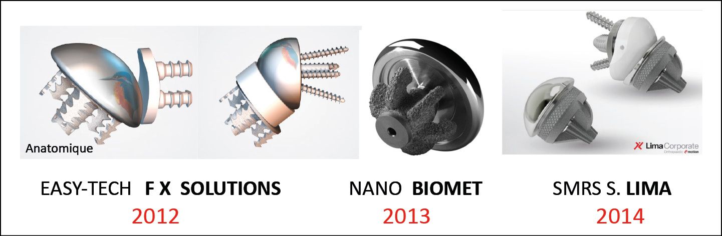 This was followed by a second wave of stemless implants that could be converted for use in both anatomical and reverse procedures: the Easytech from FX Solutions in 2012, the Nano Biomet in 2013, and the SMR S from Lima in 2014 (Fig. 5).
