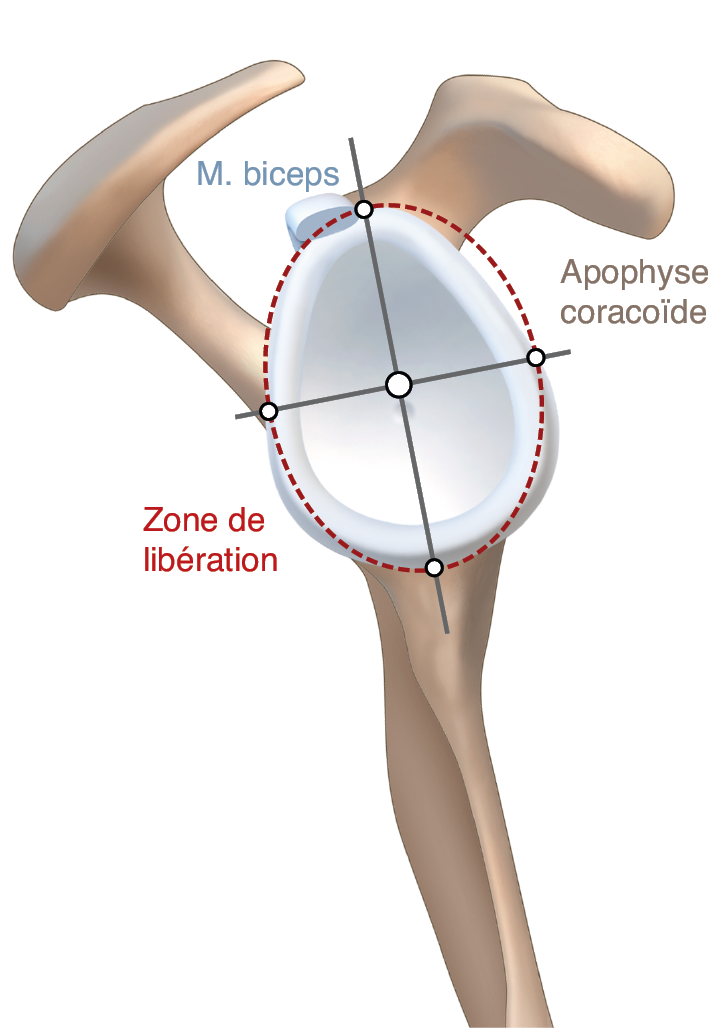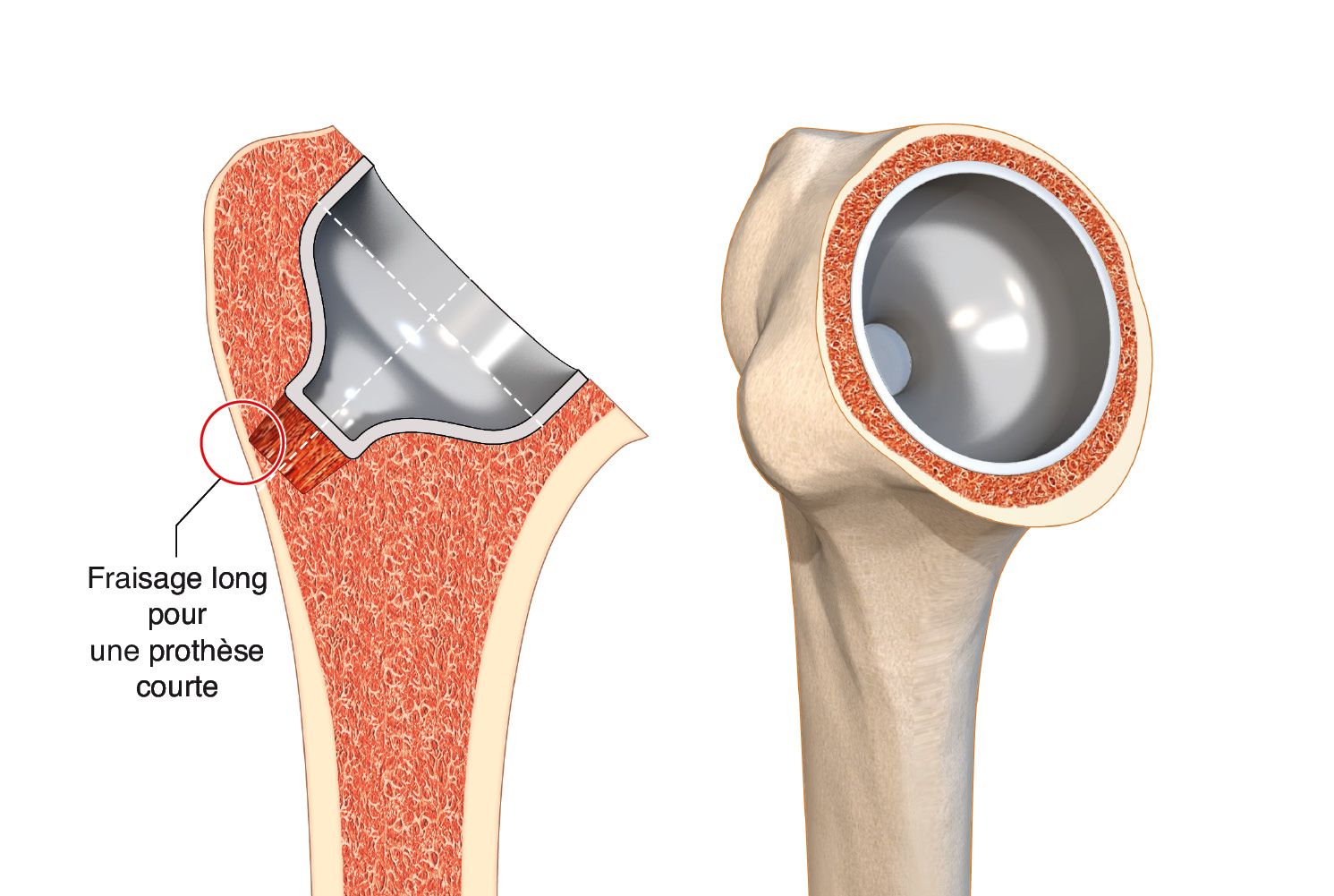 - Quicker and less blood loss: there is no need to prepare the humerus, which can be time-consuming in fragile patients, under general anaesthesia and semi-seated.